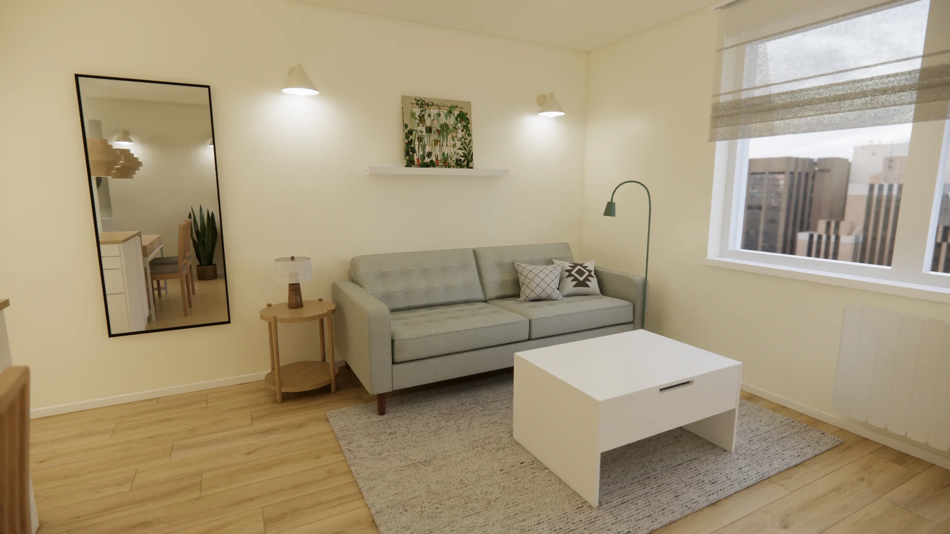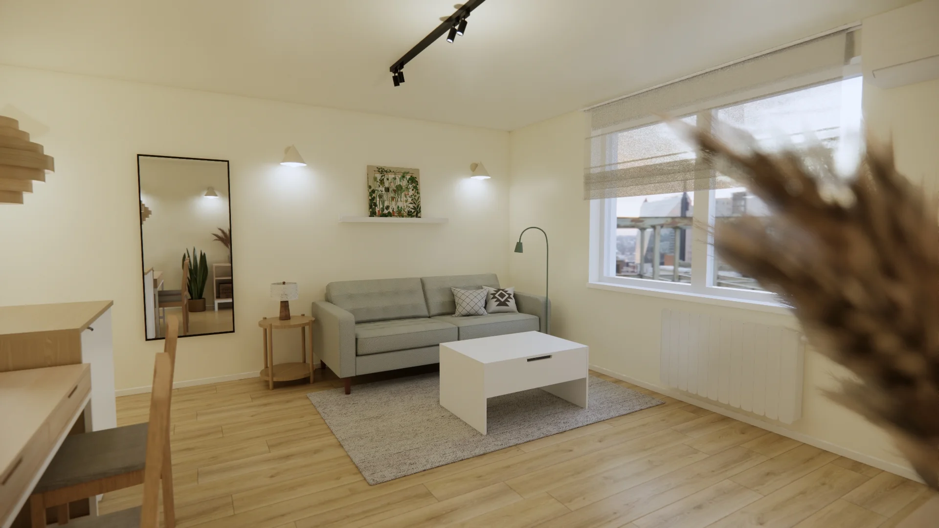 Z taką właśnie nieruchomością przyszło nam się zmierzyć – inwestor zakupił bowiem kawalerkę w starszym budynku w niewielkiej miejscowości na Śląsku. Mieszkanie było bardzo ciemne, ściany pokryte sadzą i brudem. W całej nieruchomości znajdowały się tylko dwa okna, więc część przestrzeni było niewystarczająco doświetlona. Jednym słowem – wyzwanie.