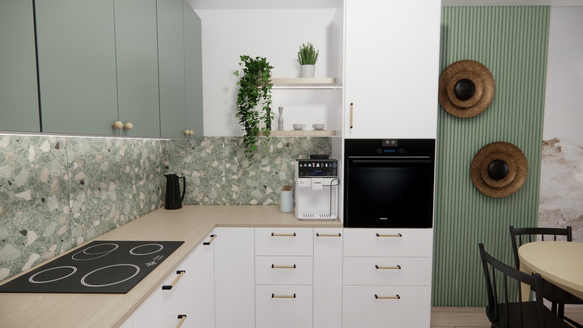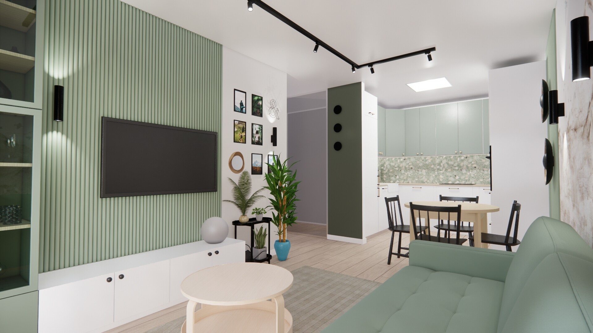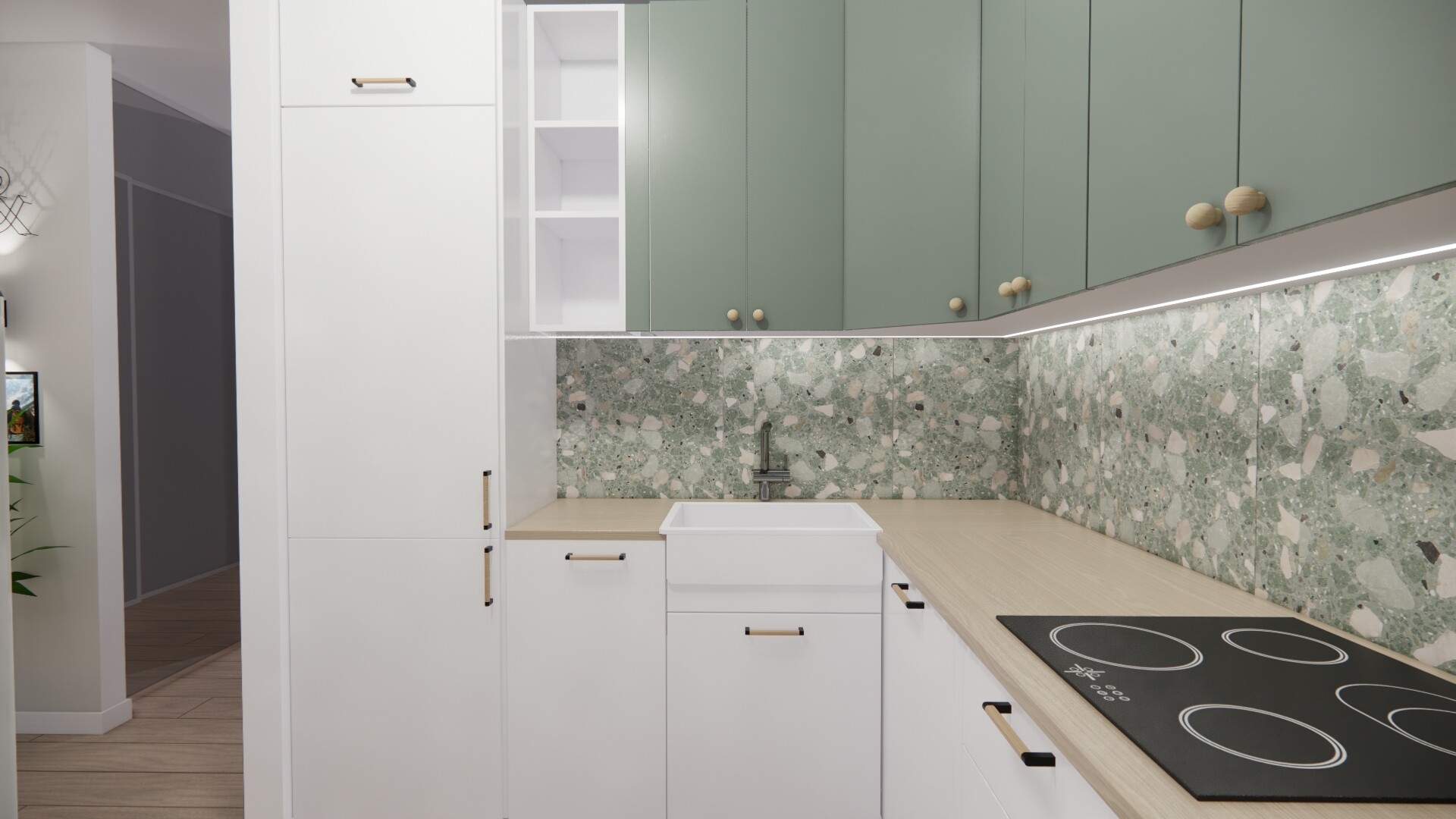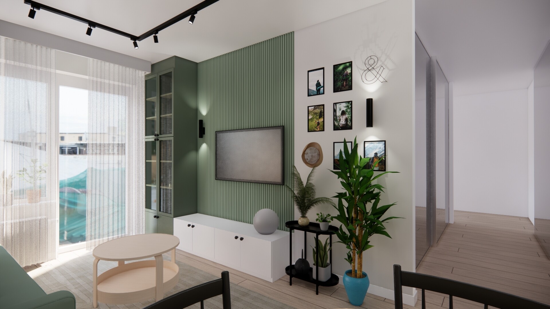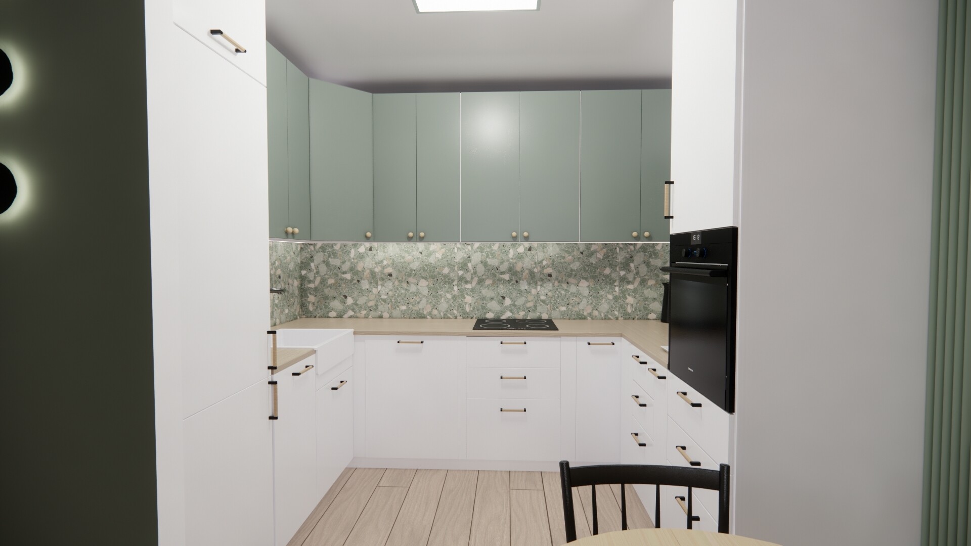 Gdzieś na jednym z wielu osiedli Wrocławia, urocza para miłośników spacerów w górach poprosiła nas o lifting salonu z aneksem kuchennym. Tęskniąc za wiosennymi górskimi krajobrazami ich głównym założeniem projektowym była ZIELEŃ!
